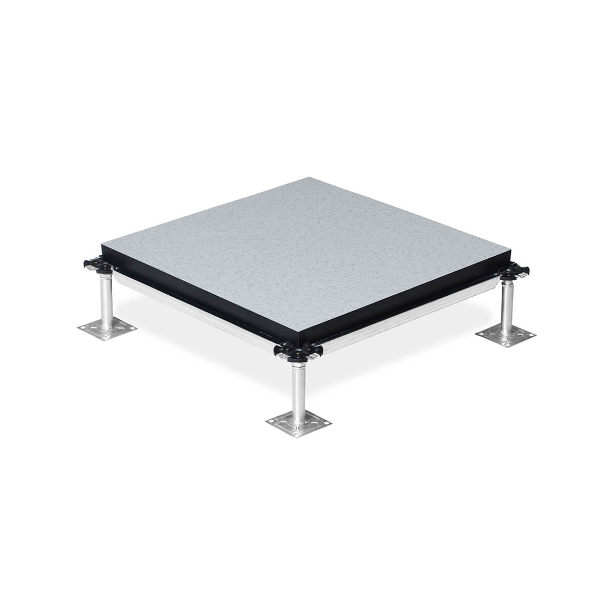 表面粘貼HPL或PVC防靜電貼面地板,底部鍍鋅鋼片封底。