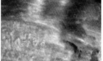 2002年7月,河南某電子玻璃公司1#、2#窯爐碹頂部位出現(xiàn)或大或小的熔洞(又叫鼠洞),嚴重影響池爐。采用國外某公司的陶瓷焊補技術(shù)進行維修,取得了成功。圖2、圖3是2#爐右側(cè)碹角焊補前后的照片。兩張照片對比,明顯看到焊補后被侵蝕的熔洞和大面積侵蝕部位被噴涂平整,這樣大碹的結(jié)構(gòu)強度得到較大提高。經(jīng)過陶瓷焊補維修,該公司l#爐運行了7年8個月、2#爐運行了8年1個月,爐齡延長了l~2年。陶瓷焊補維修成為池爐壽命延長的一個關(guān)鍵因素,為該公司帶來了顯著的經(jīng)濟效益。