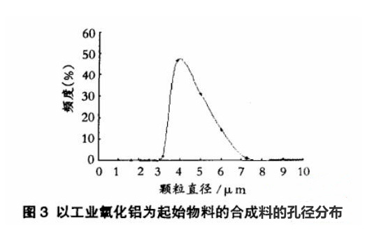 合成料在1350℃×6h熱處理后,中位孔徑約為5.1μm。故本工作所制備的輕質(zhì)莫來石具有微孔結(jié)構(gòu)。